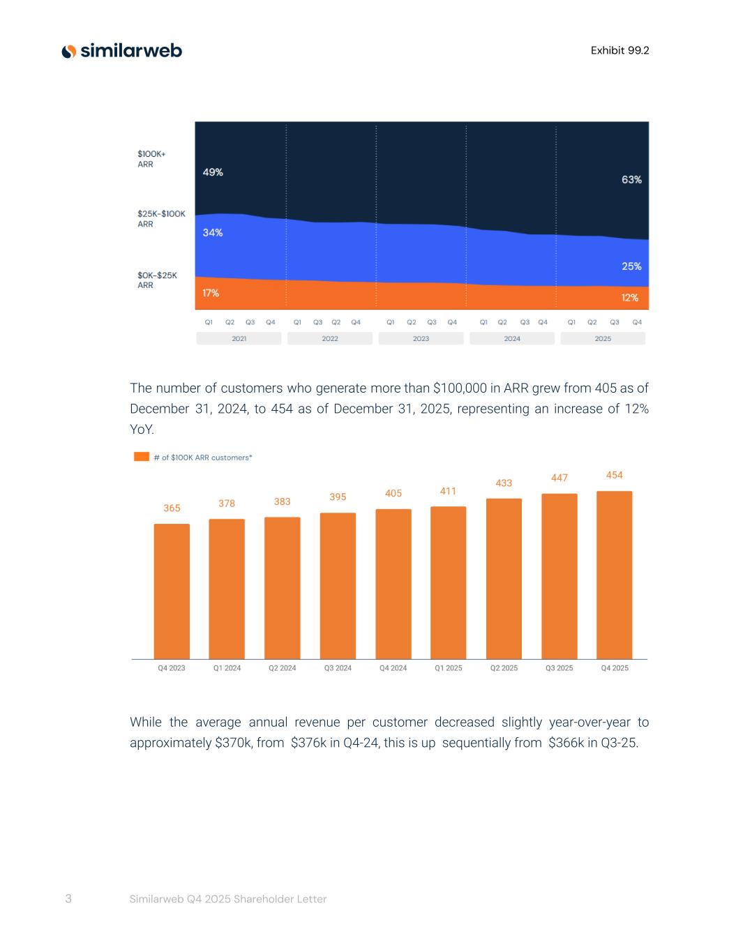 Exhibit 99.2 The number of customers who generate more than $100,000 in ARR grew from 405 as of December 31, 2024, to 454 as of December 31, 2025, representing an increase of 12% YoY. While the average annual revenue per customer decreased slightly year-over-year to approximately $370k, from $376k in Q4-24, this is up sequentially from $366k in Q3-25. 3 Similarweb Q4 2025 Shareholder Letter
