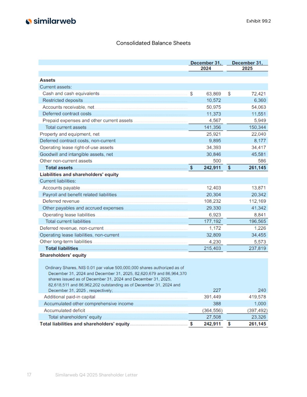 Exhibit 99.2 Consolidated Balance Sheets 17 Similarweb Q4 2025 Shareholder Letter