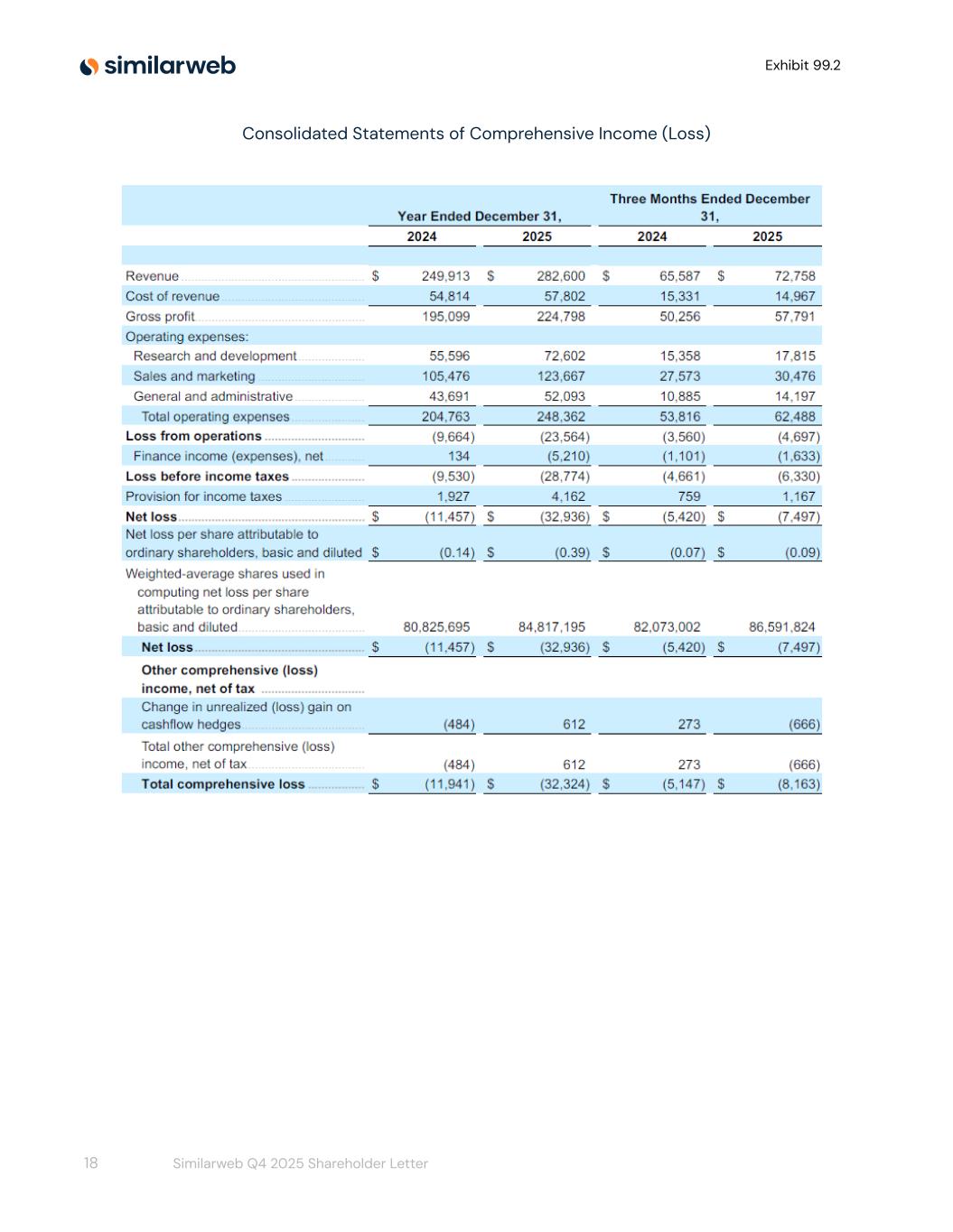 Exhibit 99.2 Consolidated Statements of Comprehensive Income (Loss) 18 Similarweb Q4 2025 Shareholder Letter