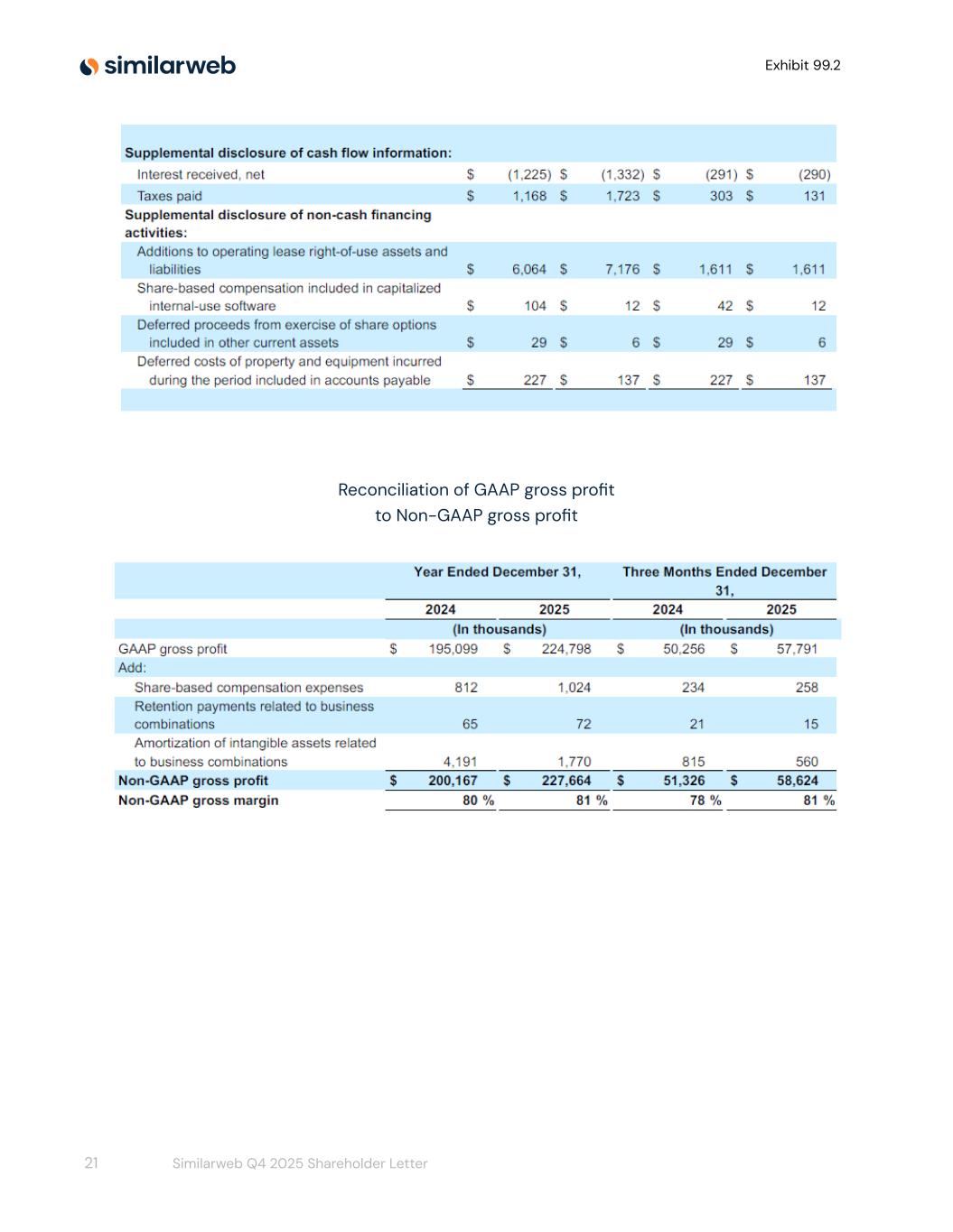 Exhibit 99.2 Consolidated Statements of Cash Flows 20 Similarweb Q4 2025 Shareholder Letter