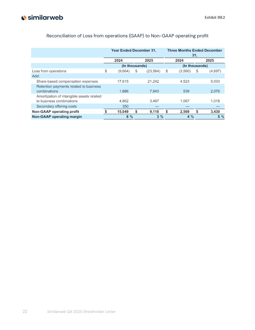 Exhibit 99.2 Reconciliation of Loss from operations (GAAP) to Non-GAAP operating profit 22 Similarweb Q4 2025 Shareholder Letter