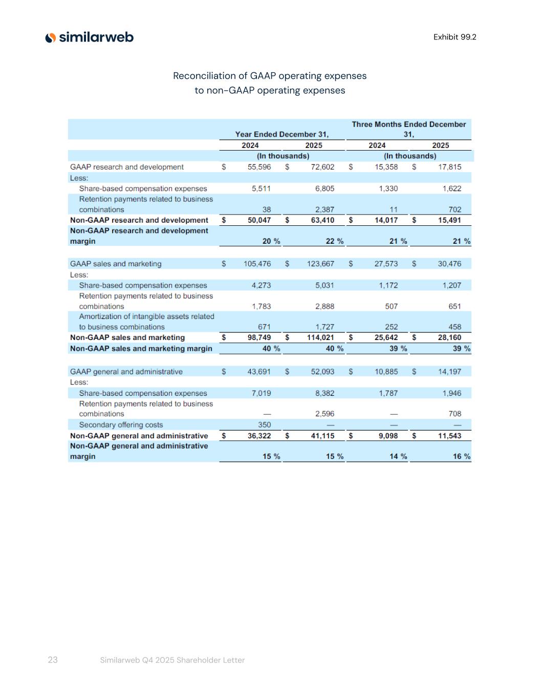 Exhibit 99.2 Reconciliation of GAAP operating expenses to non-GAAP operating expenses 23 Similarweb Q4 2025 Shareholder Letter
